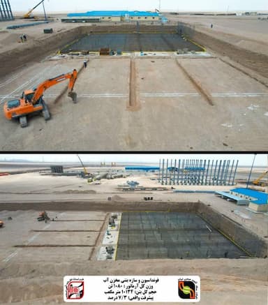بزرگترین مخزن بتنی یکپارچه ذخیره آب شرکت سنگ آهن مرکزی در پروژه آهن اسفنجی بافق در حال ساخت است.
